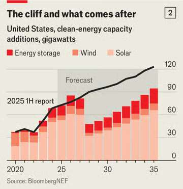 A careful analysis of the OBBB indicates a more nuanced outcome than one might expect from the headlines. Tax credits for solar, wind and green hydrogen are being phased out by 2027/28 which many predict will result in a surge in such projects in the short-term to beat the deadline. Thereafter a sudden drop in clean-energy capacity additions is forecast.