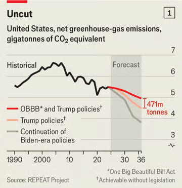 Meanwhile, the biggest legislative changes on climate action are occurring in the United States. Congress has passed Donald Trump’s One Big Beautiful Bill (OBBB) rescinding many of former President Biden’s climate-friendly energy initiatives. The result is an increase in forecast emissions.